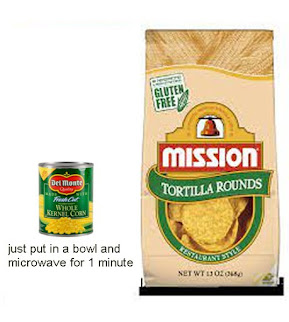 another convenient and quick to prepare healthy snack that i eat in the US is canned del monte CORN kernels paired with tortilla chips. just drain the water from the can, put in in a bowl and microwave it for 1 minute. i enjoy it with my tortilla fave - mission rounds.